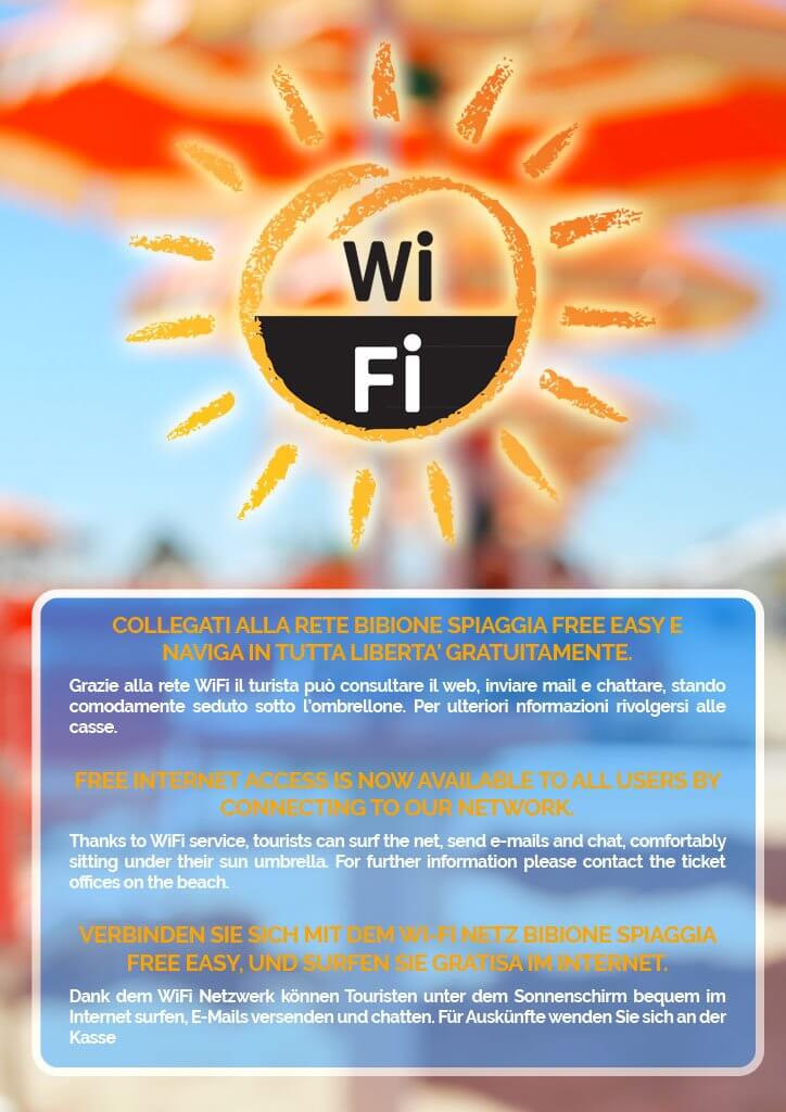 Wi-Fi am Strand – BIBIONE SPIAGGIA FREE EASY: kostenloses W-LAN, loggen Sie sich ins Netz “BIBIONE SPIAGGIA FREE EASY” ein.