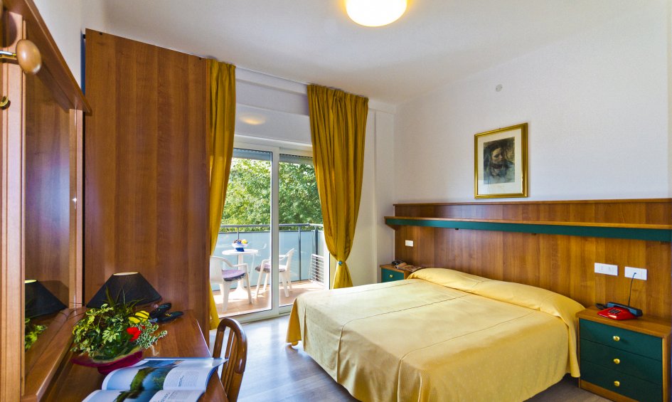 Comfortable double rooms, with large balcony with south-south-west view, satellite TV, radio, telephone, minibar, safe, air conditioning, Wi-Fi Internet connection, bathroom with shower, bidet and hairdryer.